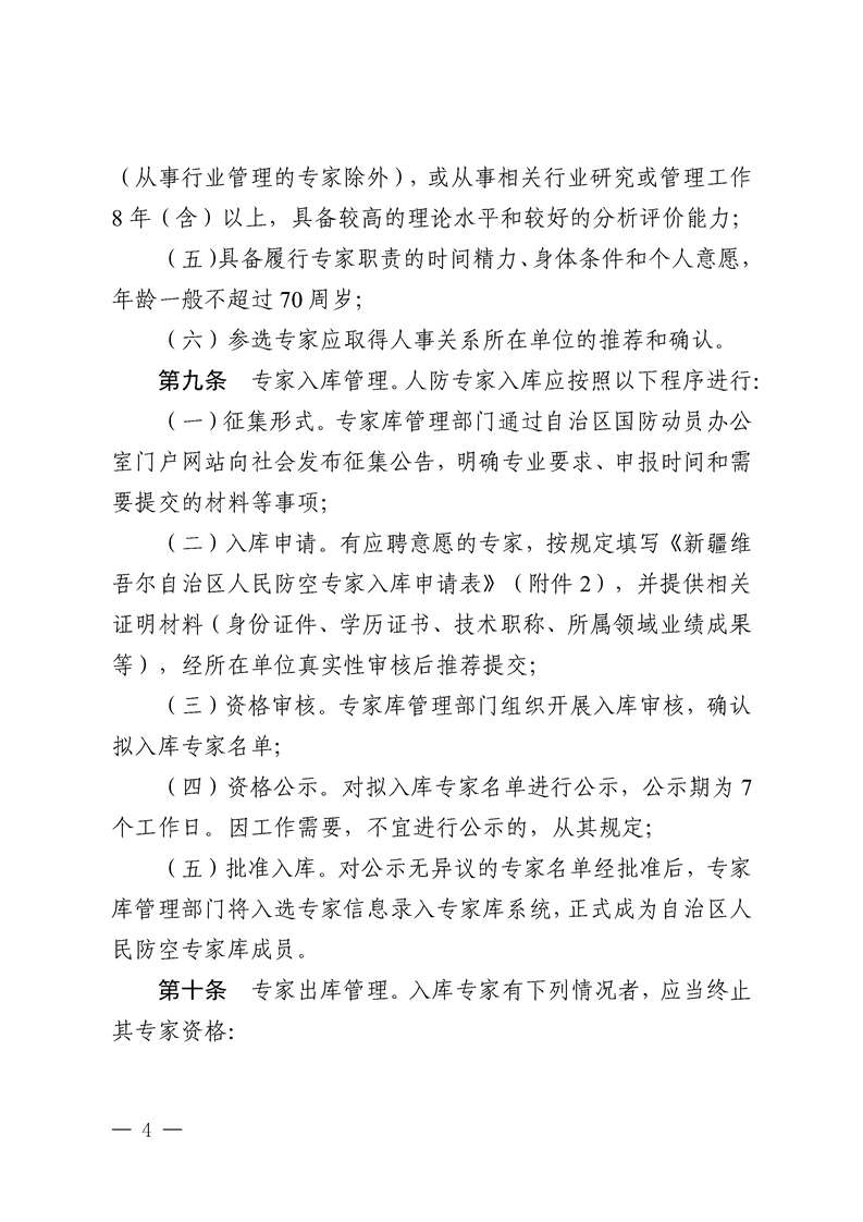 关于印发《新疆维吾尔自治区人民防空专家库管理办法》的通知