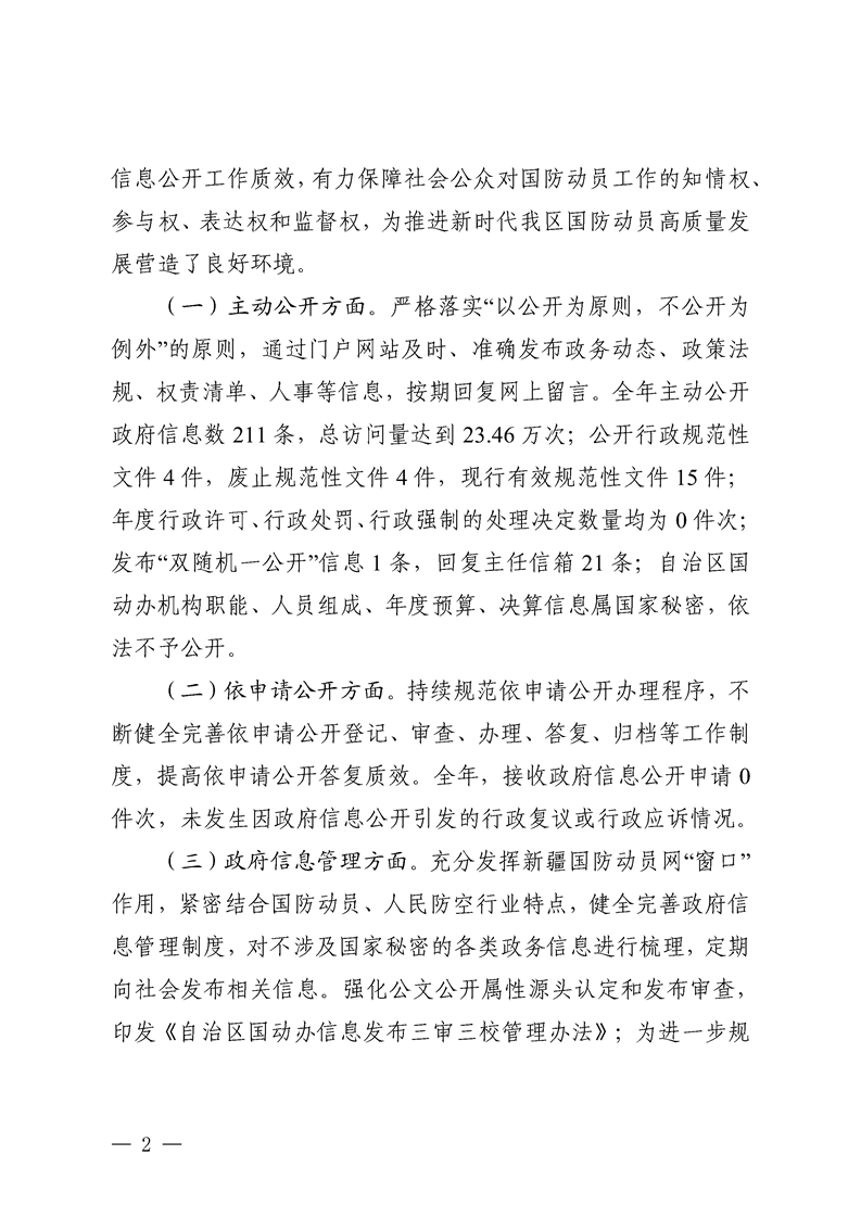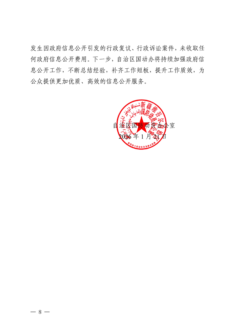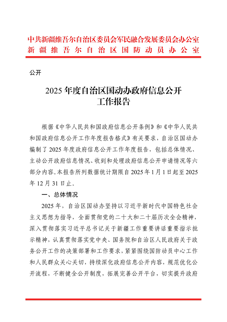 2025年度自治区国动办政府信息公开工作报告