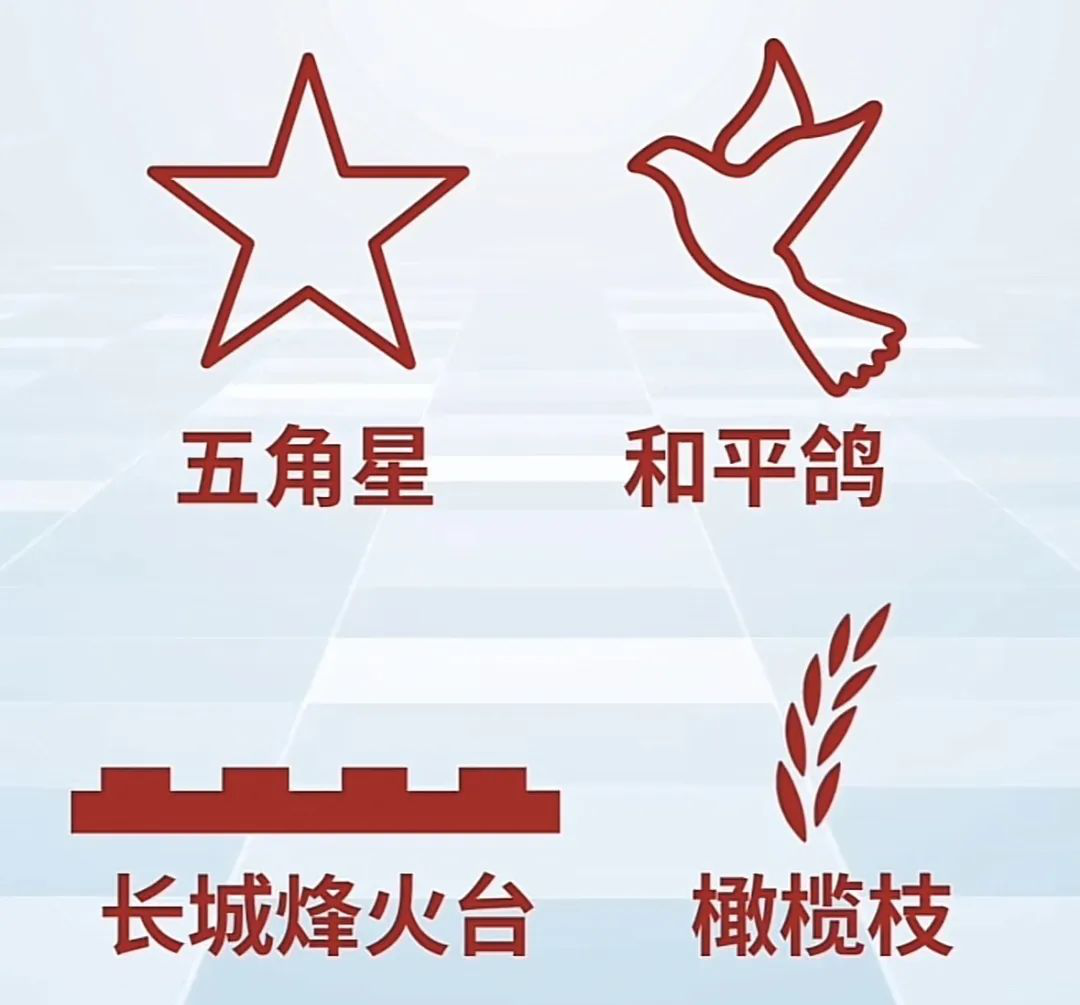 以五角星、和平鸽、